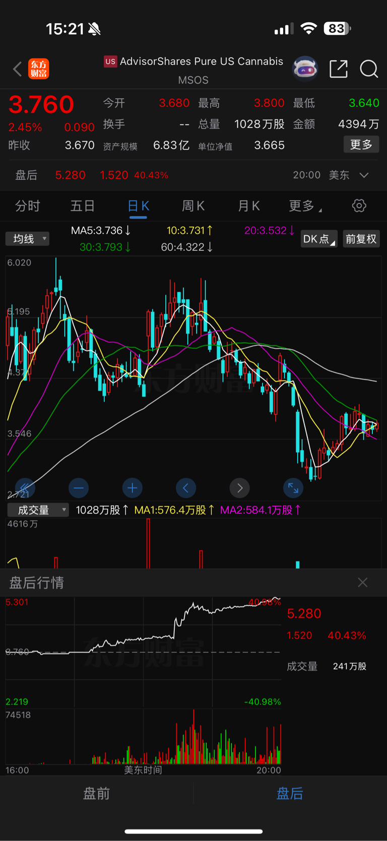 $晨光生物(SZ300138)$ 这是美股大麻板块ETF!自己看盘后涨了多少!今晚继续暴涨#强势机会#