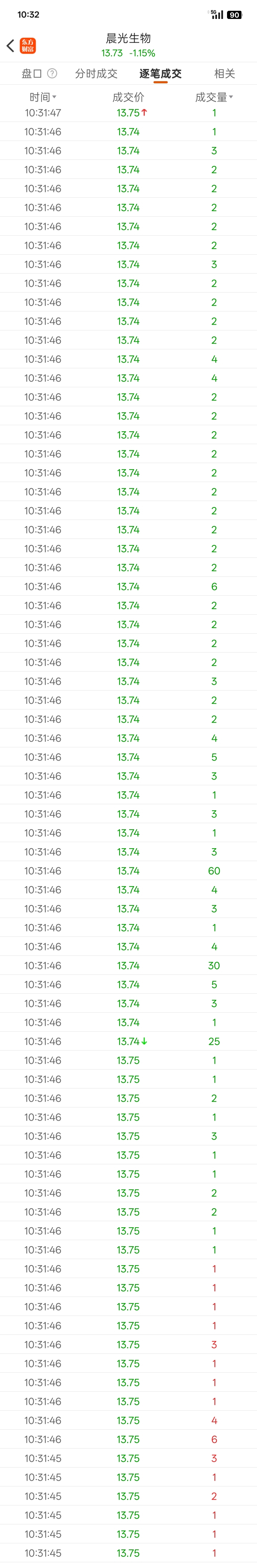 $晨光生物(SZ300138)$ 10:31分46秒,量化机器单子