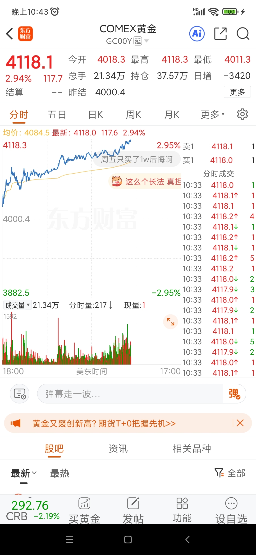 国际黄金期货指数涨疯了