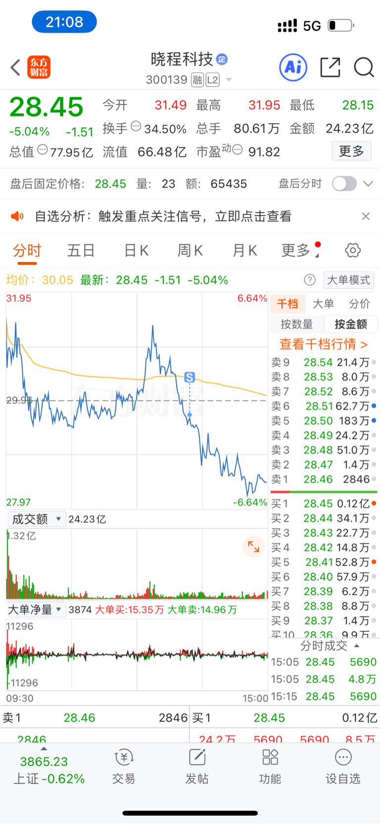 $晓程科技(SZ300139)$ 不知道对不对一看见期货那边直线跳水就秒卖来,拿个快一个星期了