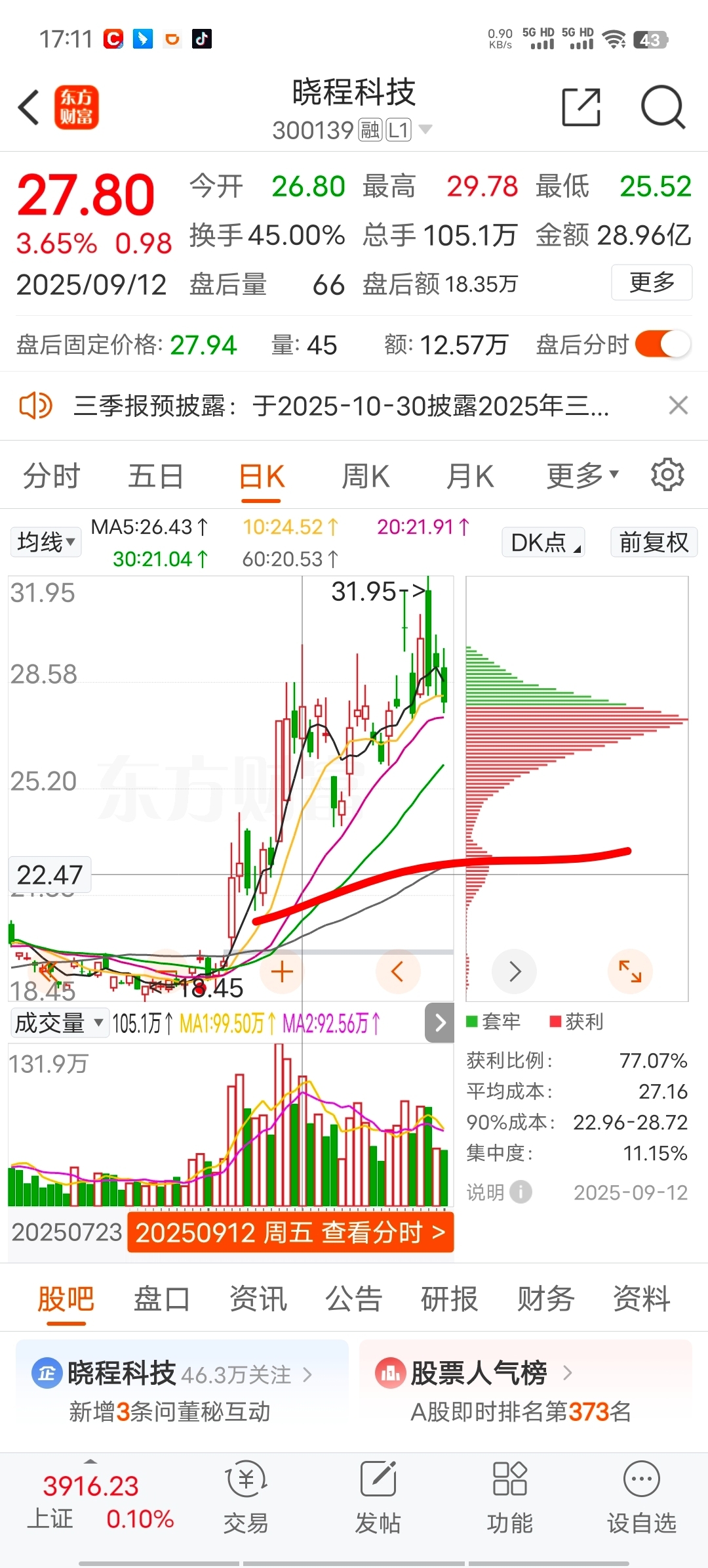 $晓程科技(SZ300139)$ 同样在9月12都是当时的高点,结果到今天这就是差距。纯纯恶心人呢