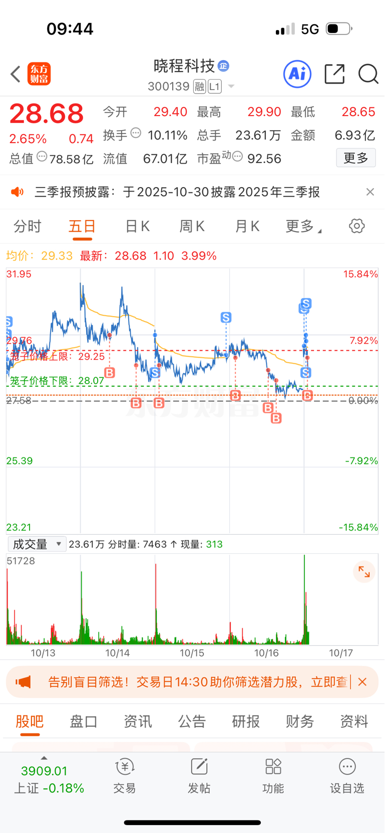 $晓程科技(SZ300139)$ 昨天加仓的三次都卖了 开心