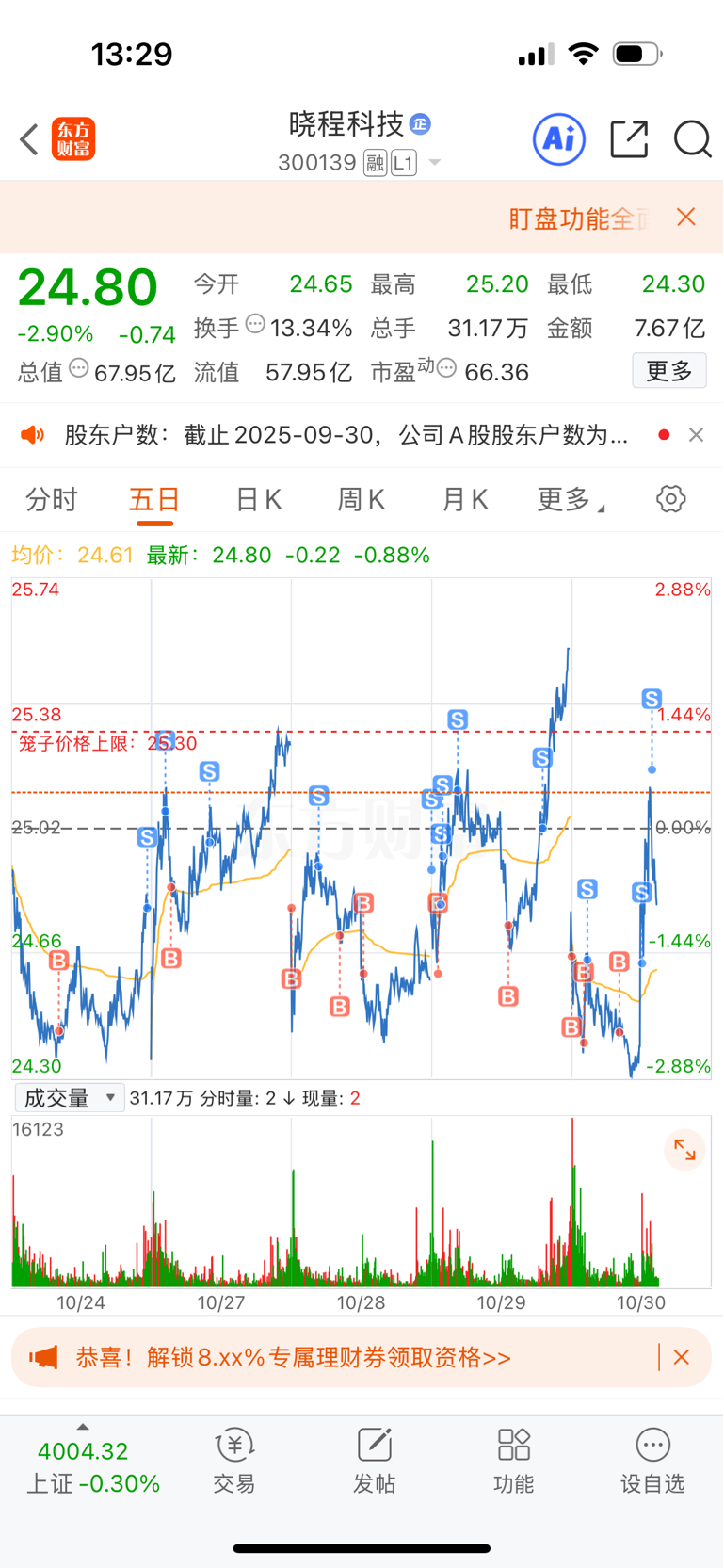 $晓程科技(SZ300139)$ 呵呵 30一路买下来