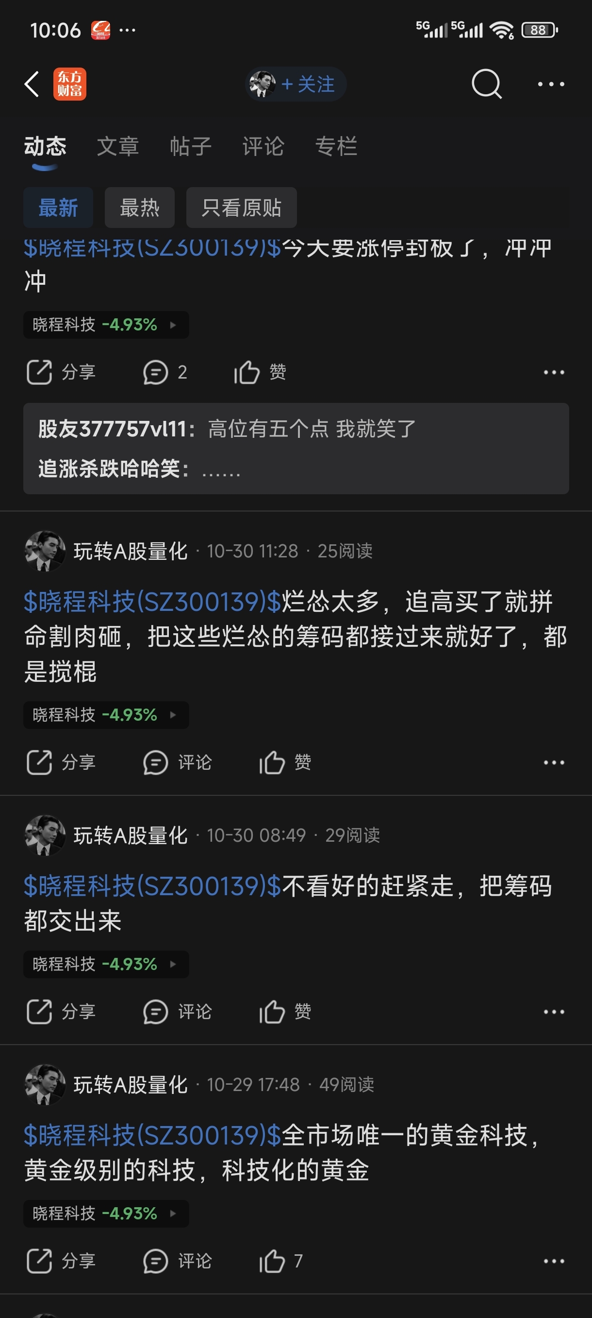 $晓程科技(SZ300139)$ 自从这家伙来唱多,天天跌