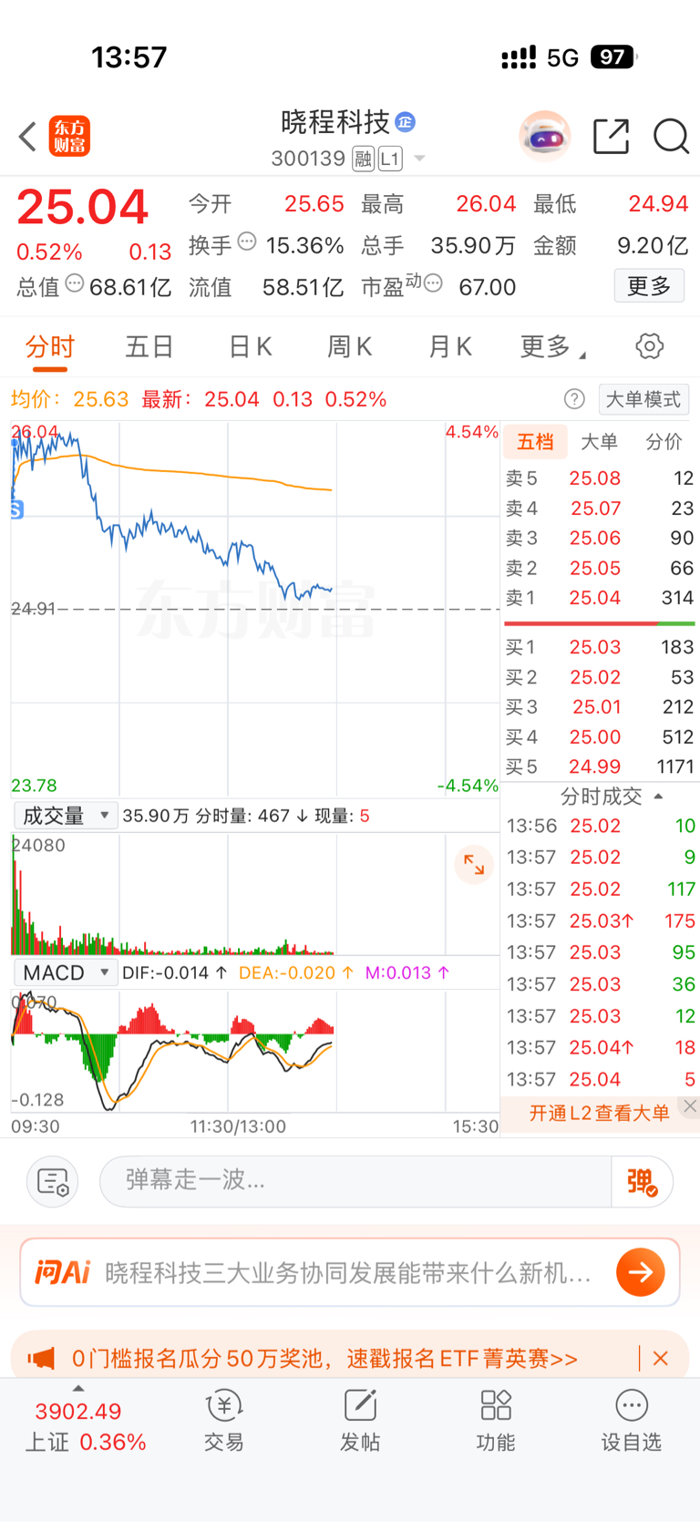 $晓程科技(SZ300139)$ 高开低走的套路为什么每次都不愿去相信呢