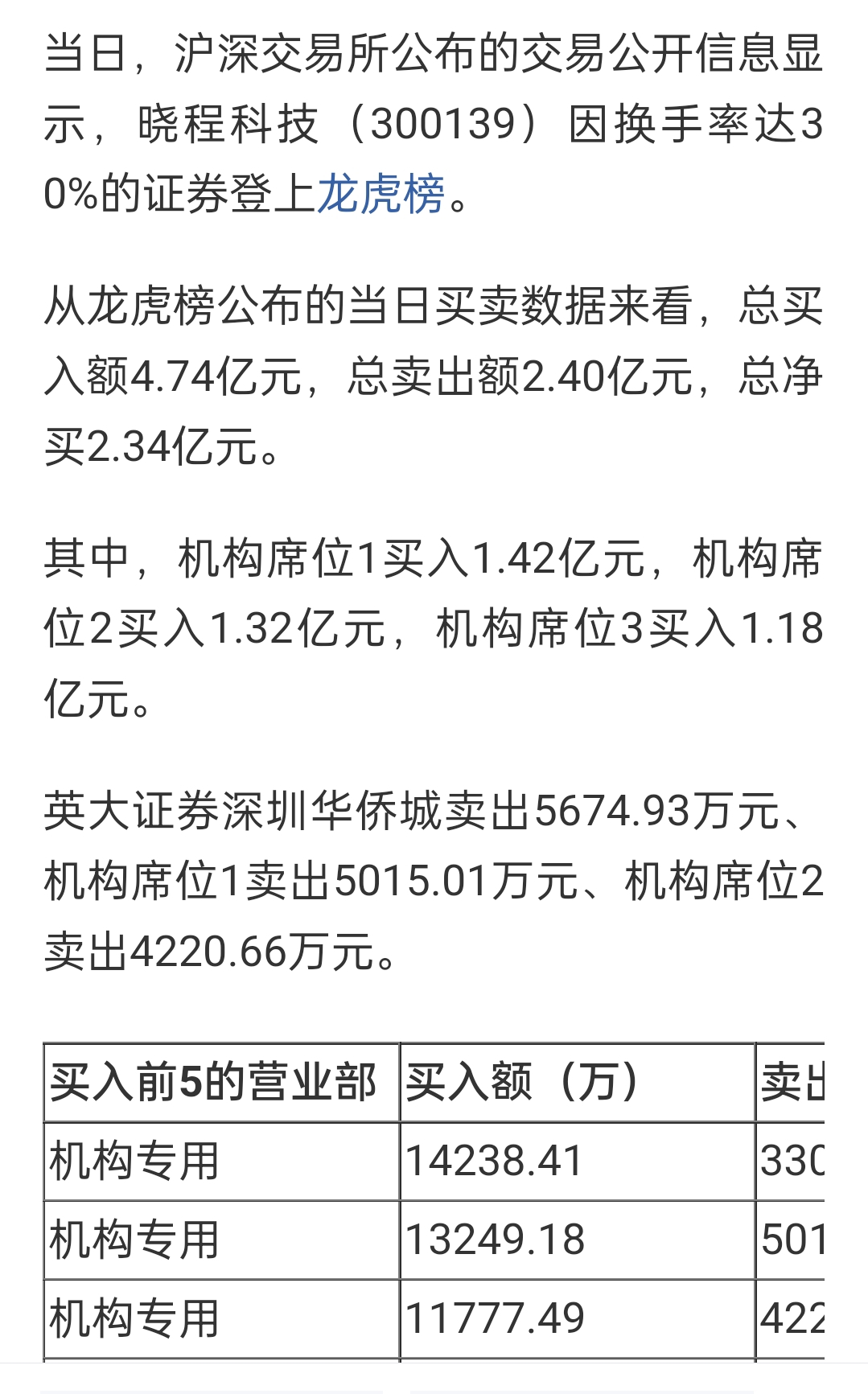 $晓程科技(SZ300139)$ 为什么没看到龙虎榜。
