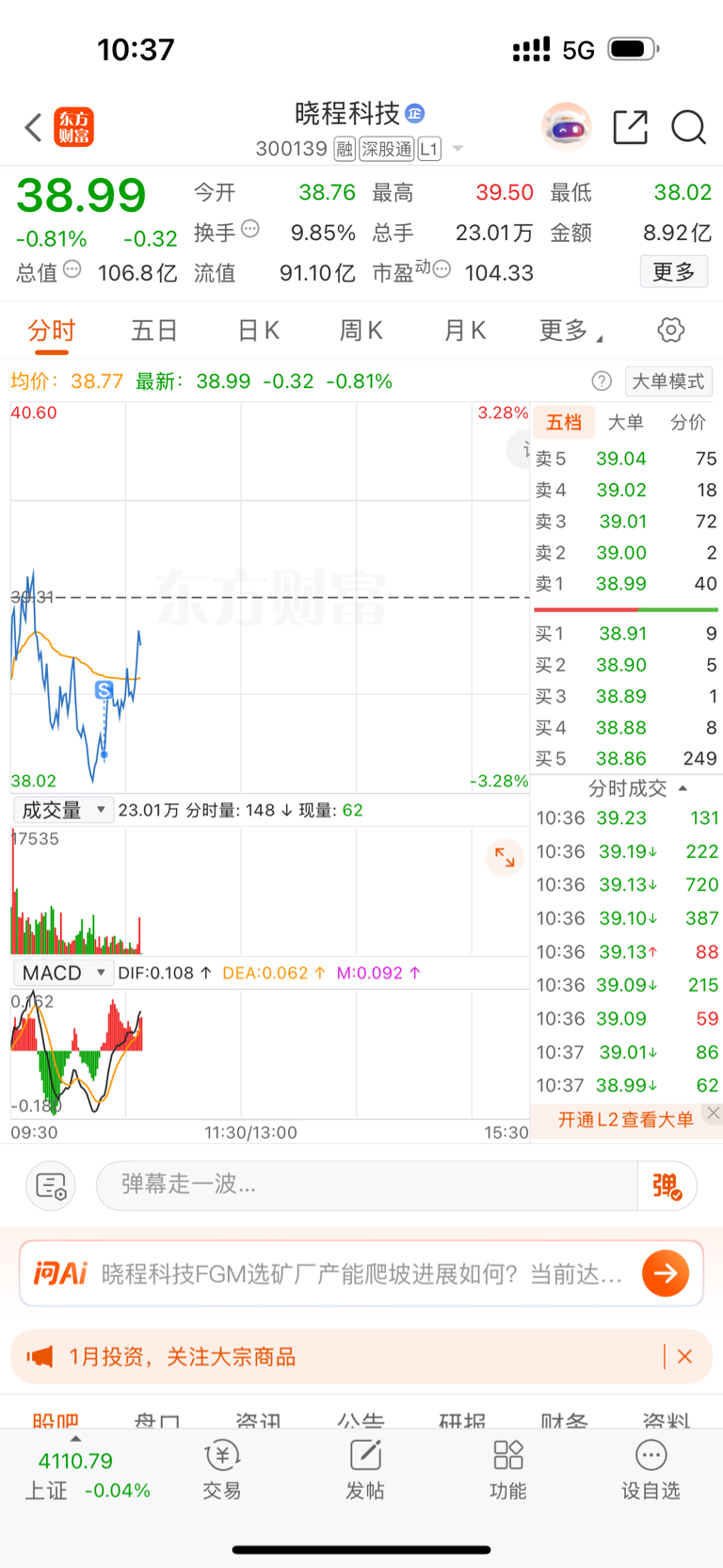 $晓程科技(SZ300139)$ 主力太狗了,亏2w走