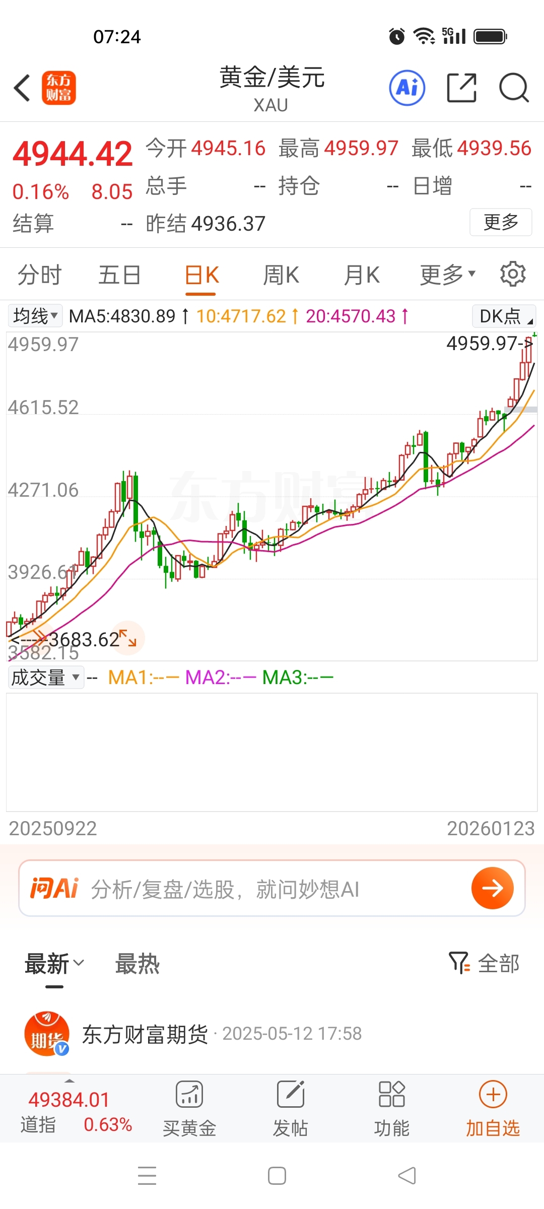 够装睁开你的够眼看看,黄金已经涨到4900,你今天是不是还要装s?