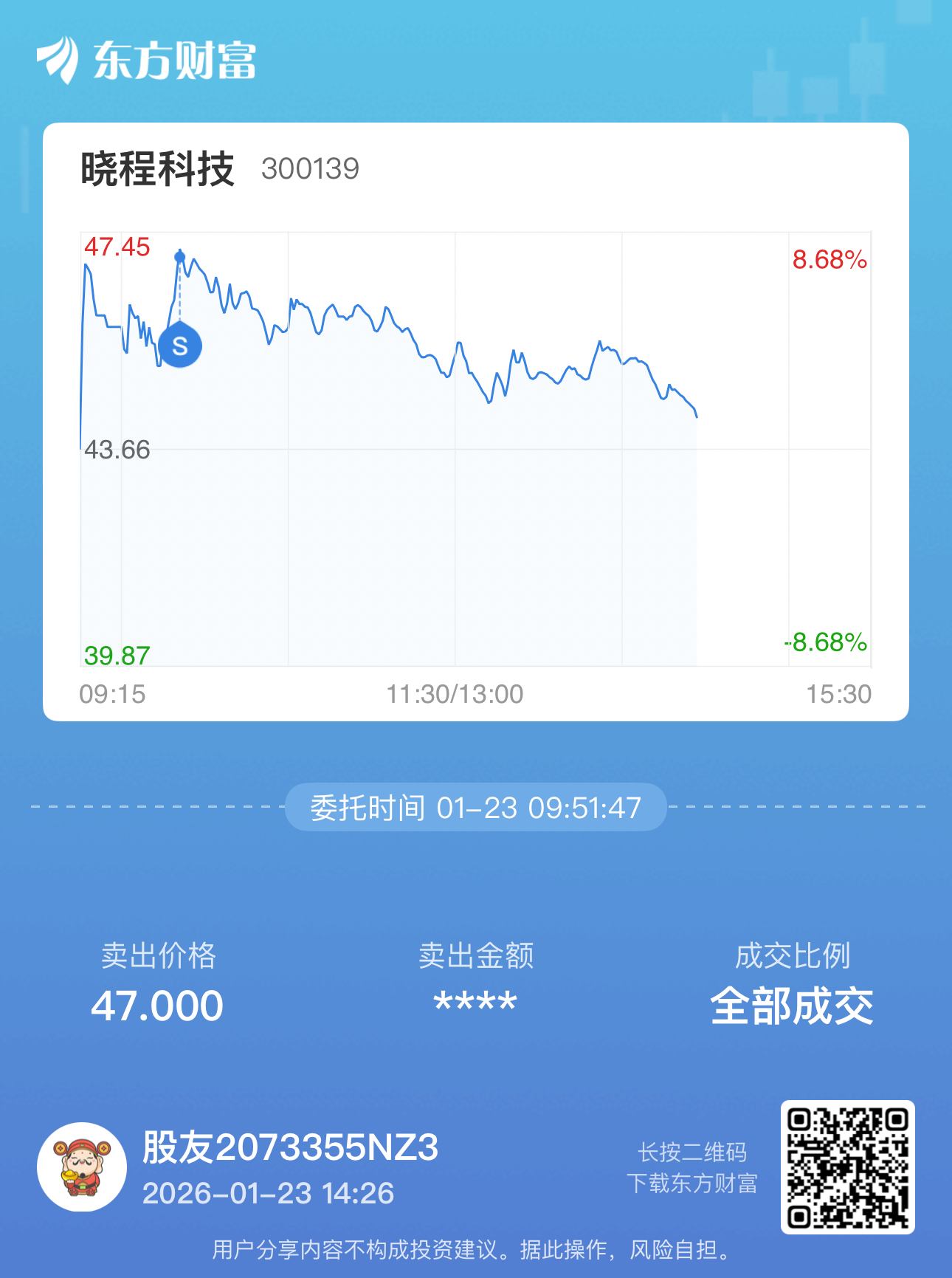 温馨提示: 1.根据《证券法》规定,禁止编造、传播虚假信息或者误导性信息,扰乱证券市场;2.用户在本社区发表的所有资料、言论等仅代表个人观点,与本网站立场无关,不对您构成任何投资建议。用户应基于自己的独立判断,自行决定证券投资并承担相应风险。《东方财富社区管理规定》