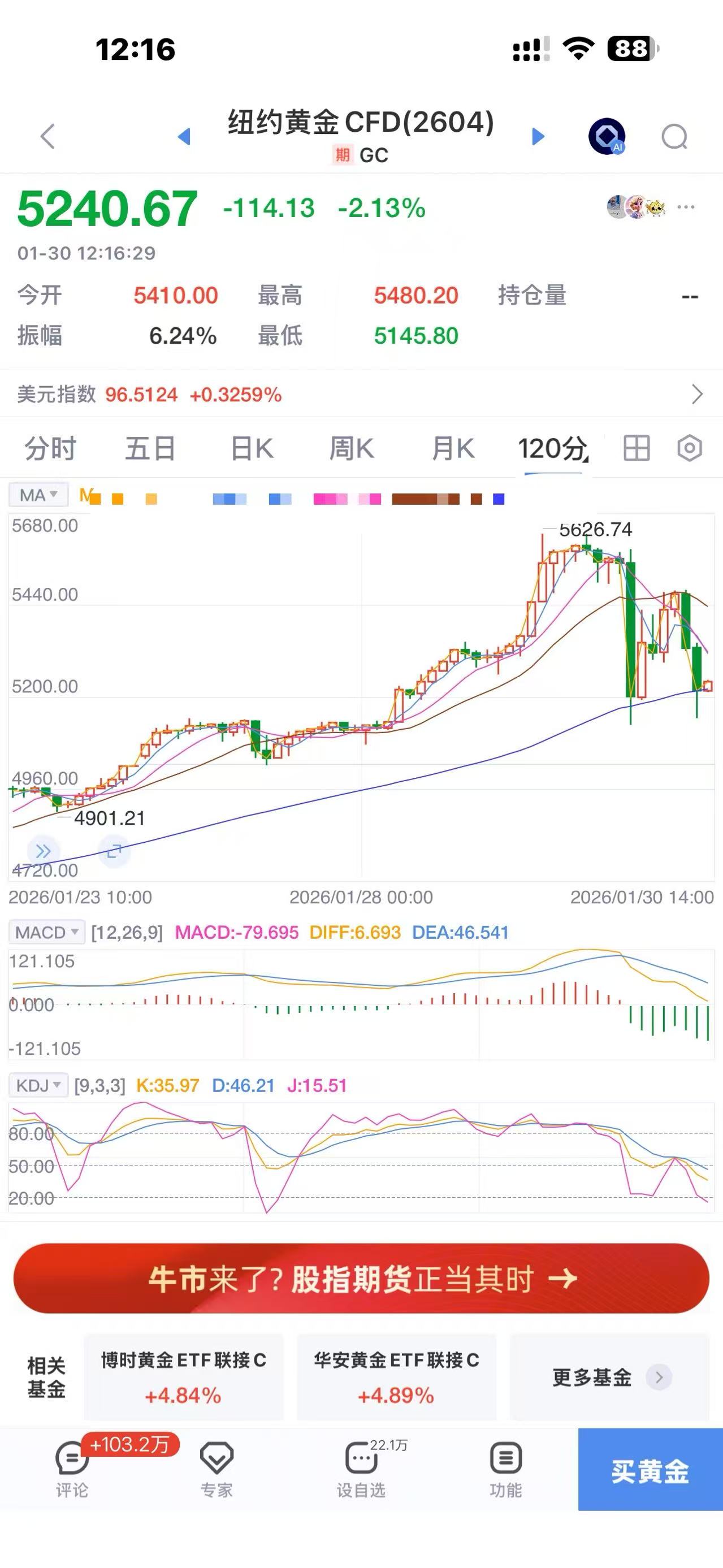 纽约黄金5221点开始企稳震荡向上,跌板开始买点