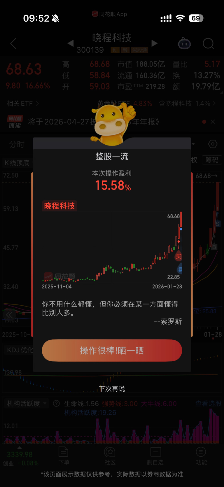 真的很幸运,和晓程科技特别有缘分,赚钱和逃顶都很成功,回头再见