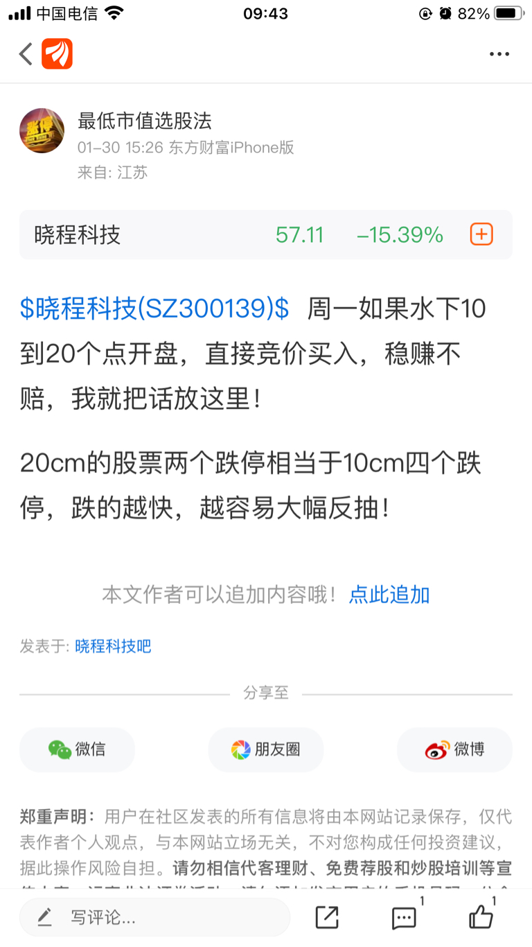温馨提示: 1.根据《证券法》规定,禁止编造、传播虚假信息或者误导性信息,扰乱证券市场;2.用户在本社区发表的所有资料、言论等仅代表个人观点,与本网站立场无关,不对您构成任何投资建议。用户应基于自己的独立判断,自行决定证券投资并承担相应风险。《东方财富社区管理规定》