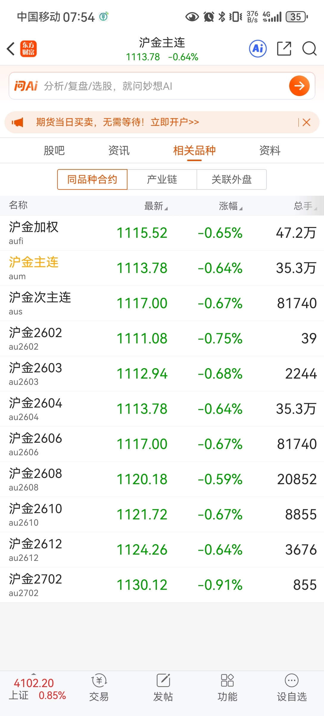 昨天我晓程科技是不是买多了,夜盘就国际金价指数一路飙跌,其他的有色都上涨,早知道