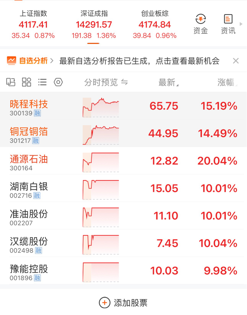 今天开盘买了三个:通源石油、晓程科技、铜冠铜箔,明天通源石油应该还有一个板!