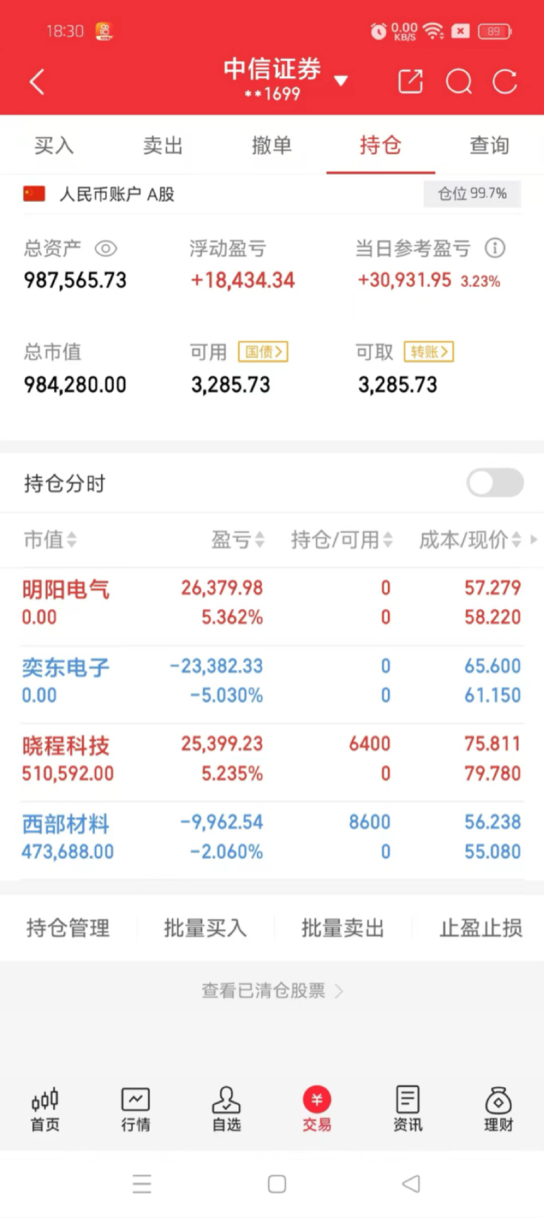 今日买入 : $晓程科技(SZ300139)$ $西部材料(SZ002149)$