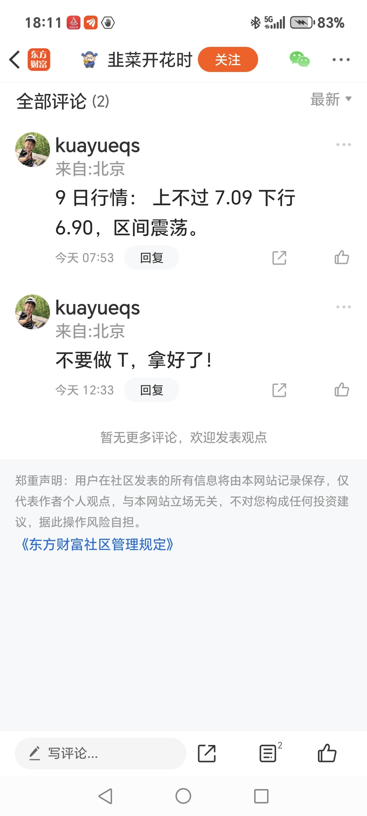 温馨提示: 1.根据《证券法》规定,禁止编造、传播虚假信息或者误导性信息,扰乱证券市场;2.用户在本社区发表的所有资料、言论等仅代表个人观点,与本网站立场无关,不对您构成任何投资建议。用户应基于自己的独立判断,自行决定证券投资并承担相应风险。《东方财富社区管理规定》