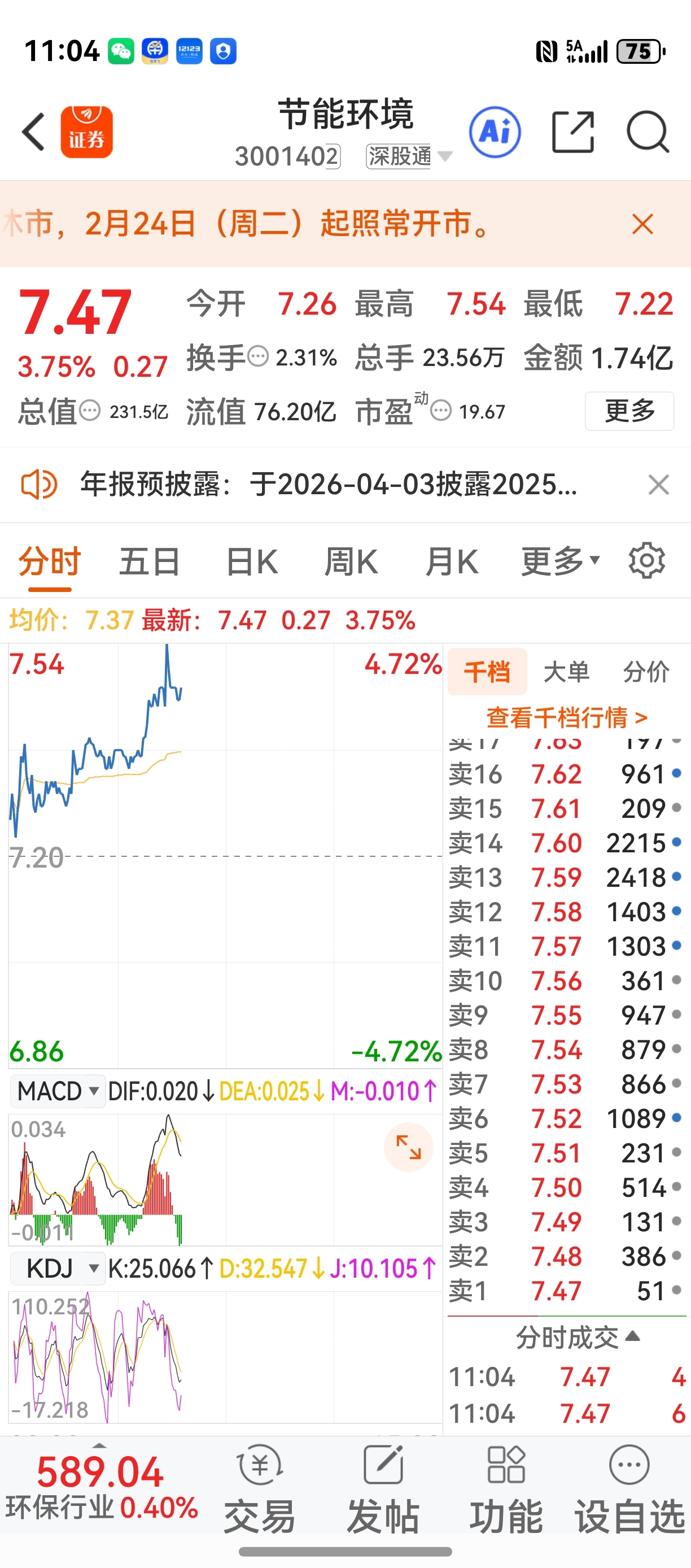 好了兄弟们今天这里可以下班了,稳字当头,预期收盘价7.56上下5分!