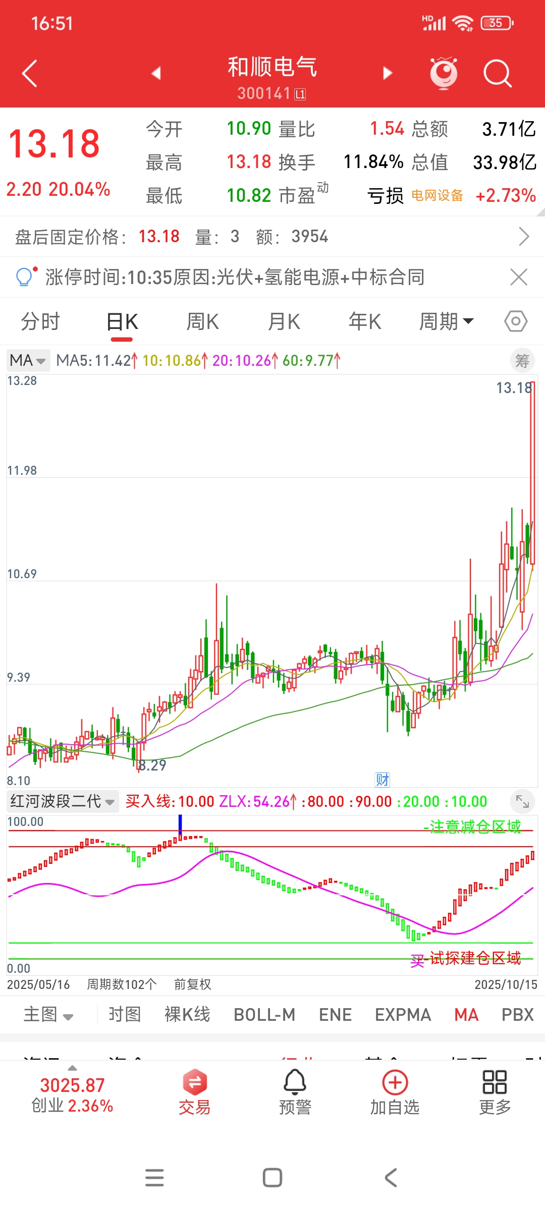 $和顺电气(SZ300141)$ 很直观了,没什么可说的,红柱不停,上涨不止,红柱拉长,加速不止,继续冲