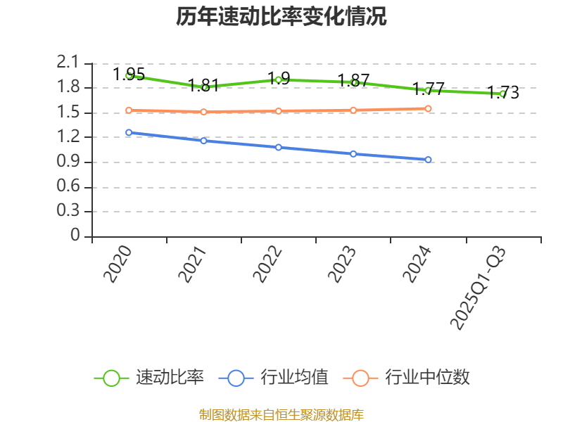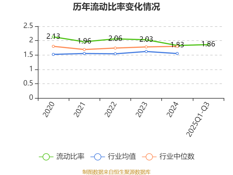 2025年前三季度,公司流动比率为1.86,速动比率为1.73。