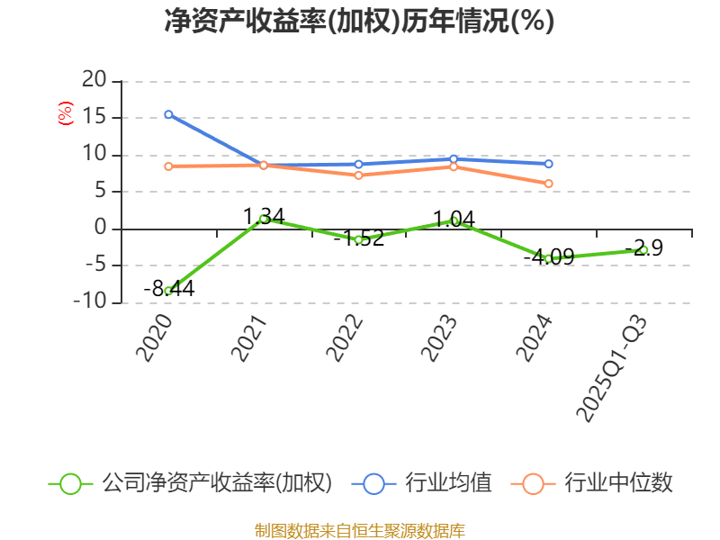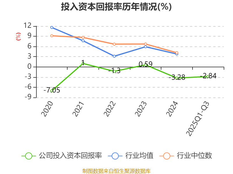 盈利能力方面, 2025年前三季度公司加权平均净资产收益率为-2.9%,同比下降2.82个百分点。公司2025年前三季度投入资本回报率为-2.84%,较上年同期下降2.66个百分点。