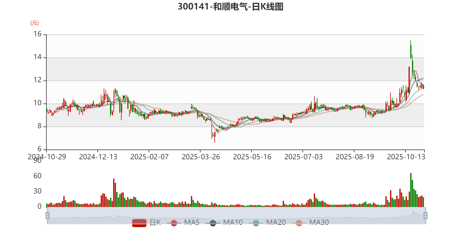 中证智能财讯和顺电气(300141)10月29日披露2025年第三季度报告。前三季度公司实现营业总收入2.86亿元,同比增长0.44%;归母净利润亏损1899.82万元,上年同期亏损54.28万元;扣非净利润亏损2148.57万元,上年同期亏损275.06万元;经营活动产生的现金流量净额为-7760.23万元,上年同期为6737.98万元;报告期内,和顺电气基本每股收益为-0.0743元,加权平均净资产收益率为-2.90%。
