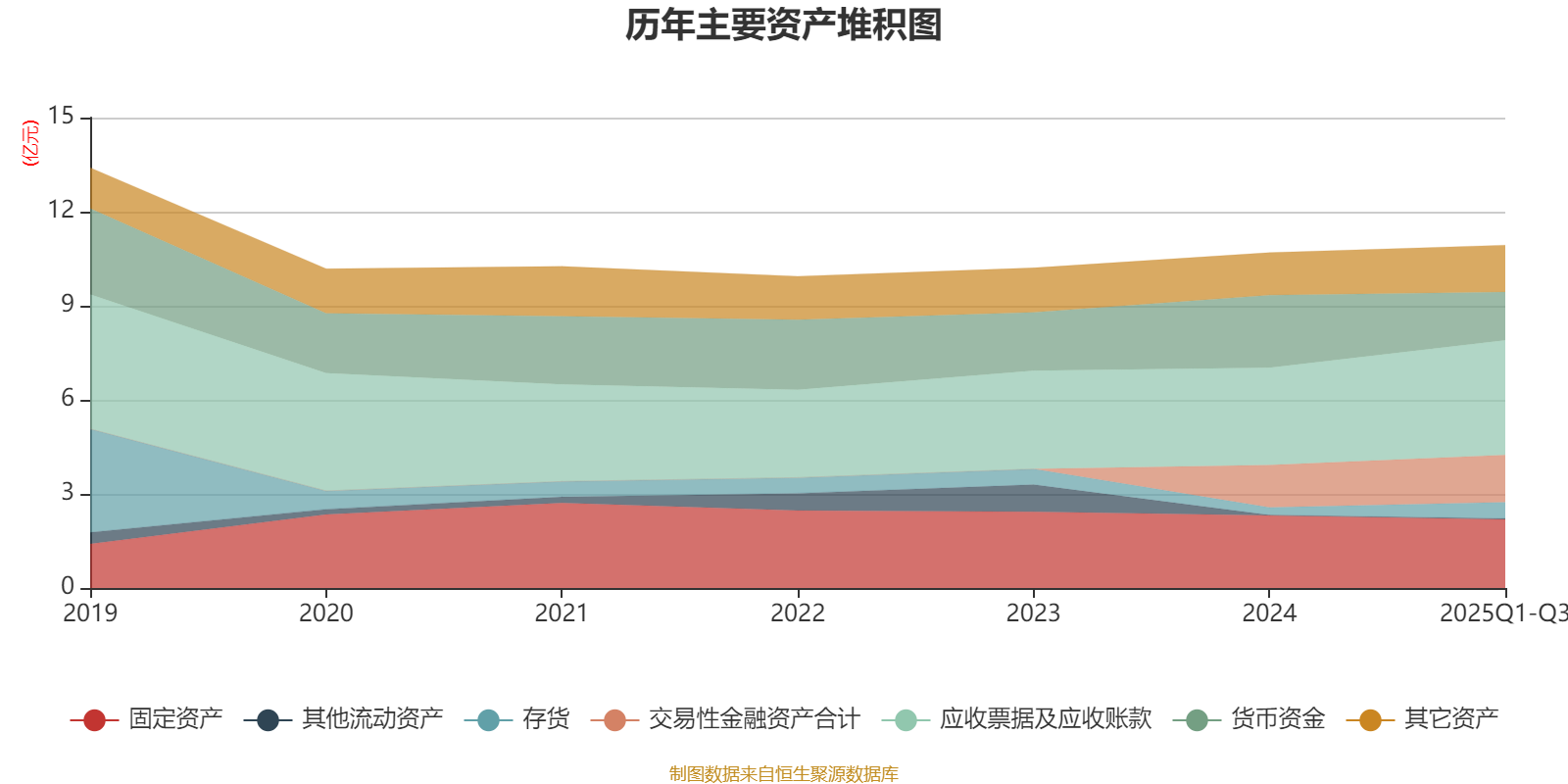 资产重大变化方面,截至2025年三季度末,公司货币资金较上年末减少33.65%,占公司总资产比重下降7.6个百分点;应收票据及应收账款较上年末增加17.81%,占公司总资产比重上升4.43个百分点;存货较上年末增加114.82%,占公司总资产比重上升2.5个百分点;固定资产较上年末减少5.57%,占公司总资产比重下降1.65个百分点。