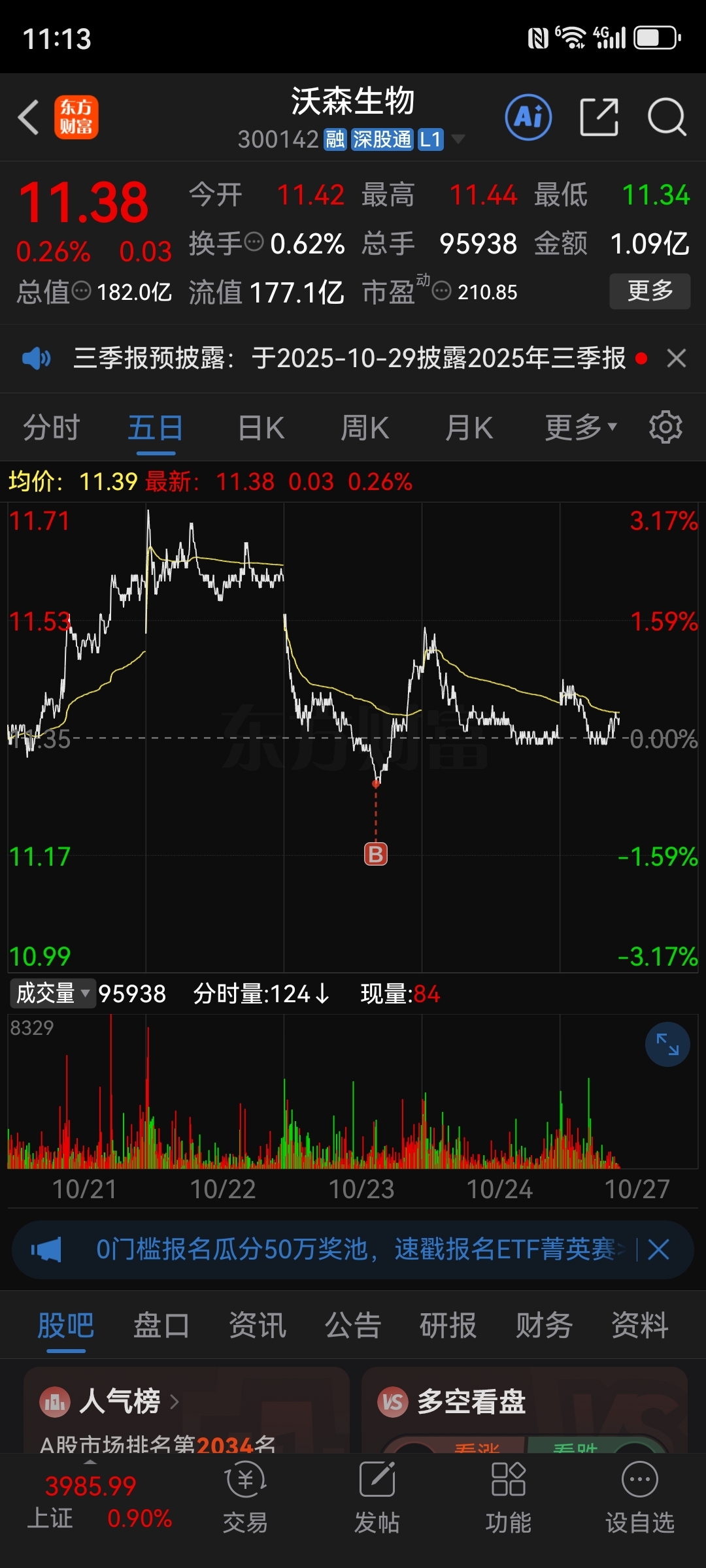 $沃森生物(SZ300142)$ 跌破11再补两成