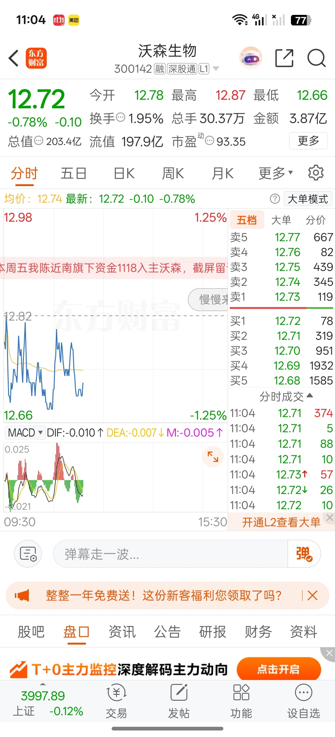 $沃森生物(SZ300142)$ 陈近南出来,敢不敢打赌,周五不跌破12你叫我die,反之,我叫你,你说11.18,我设高一点
