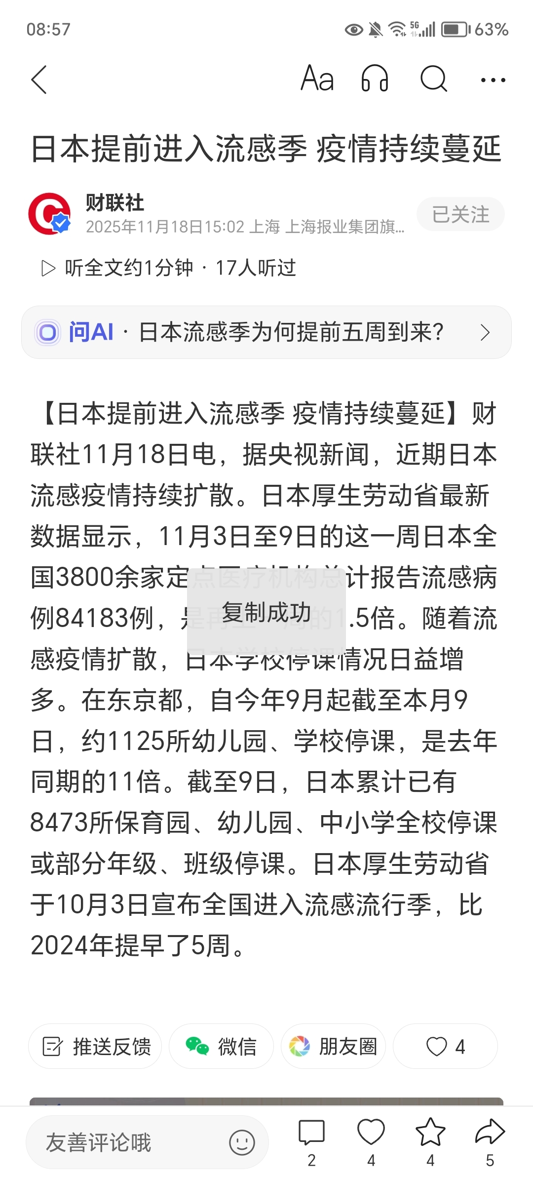 $沃森生物(SZ300142)$ 日本提前进入流感季 疫情持续蔓延