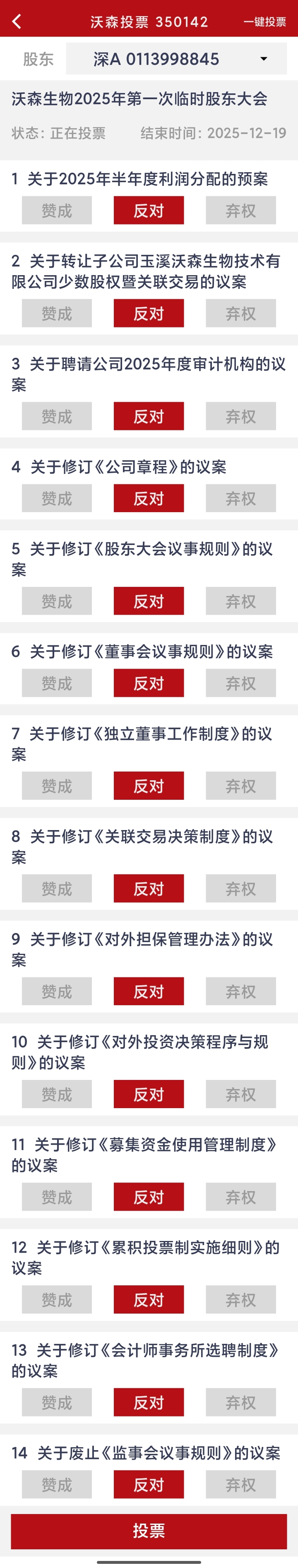 $沃森生物(SZ300142)$ 行使股东的投票权。