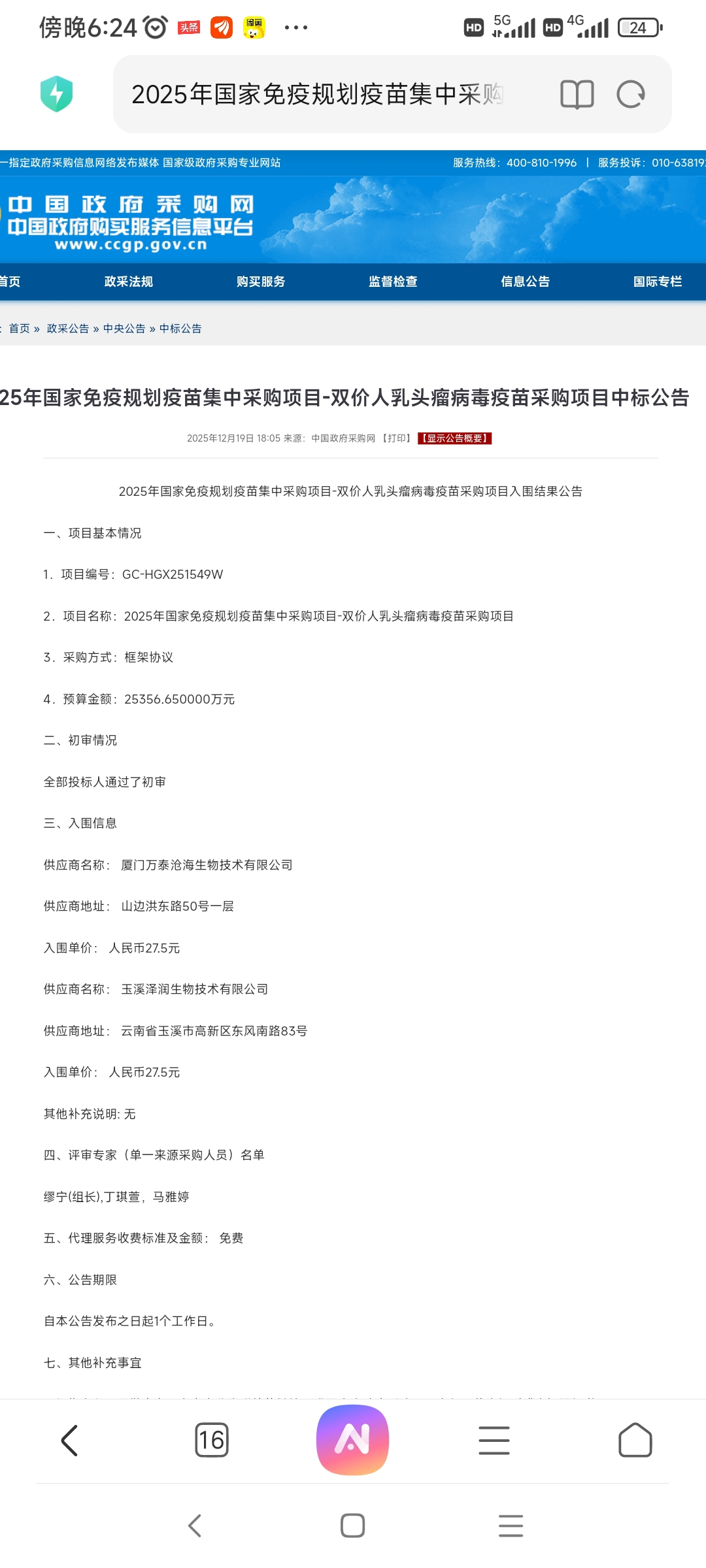 $沃森生物(SZ300142)$ 沃森生物公告公告中标2.5亿大单,中标2.5亿大单,中标2.5亿大单