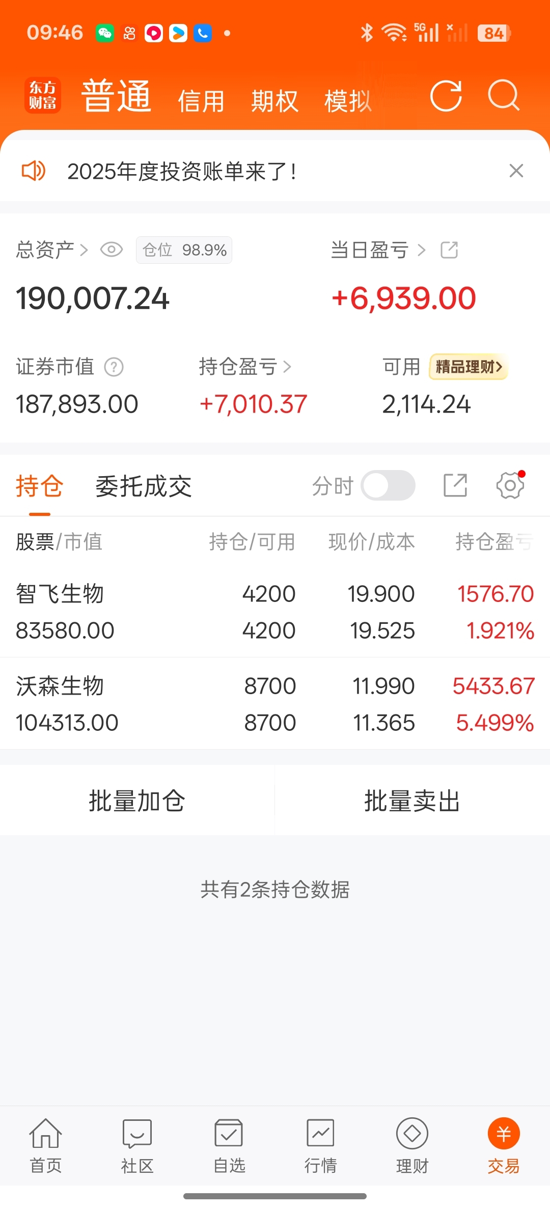 $沃森生物(SZ300142)$ 手贱买了点智飞