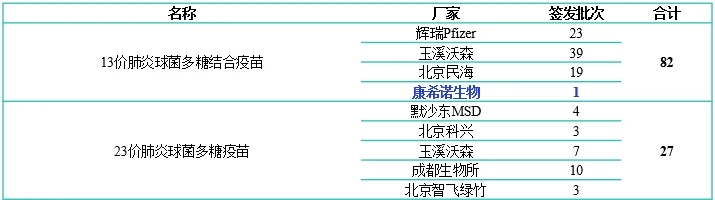 2025年1-12月13价肺炎多糖结合苗共签发82批,分别来自辉瑞、玉溪沃森、北