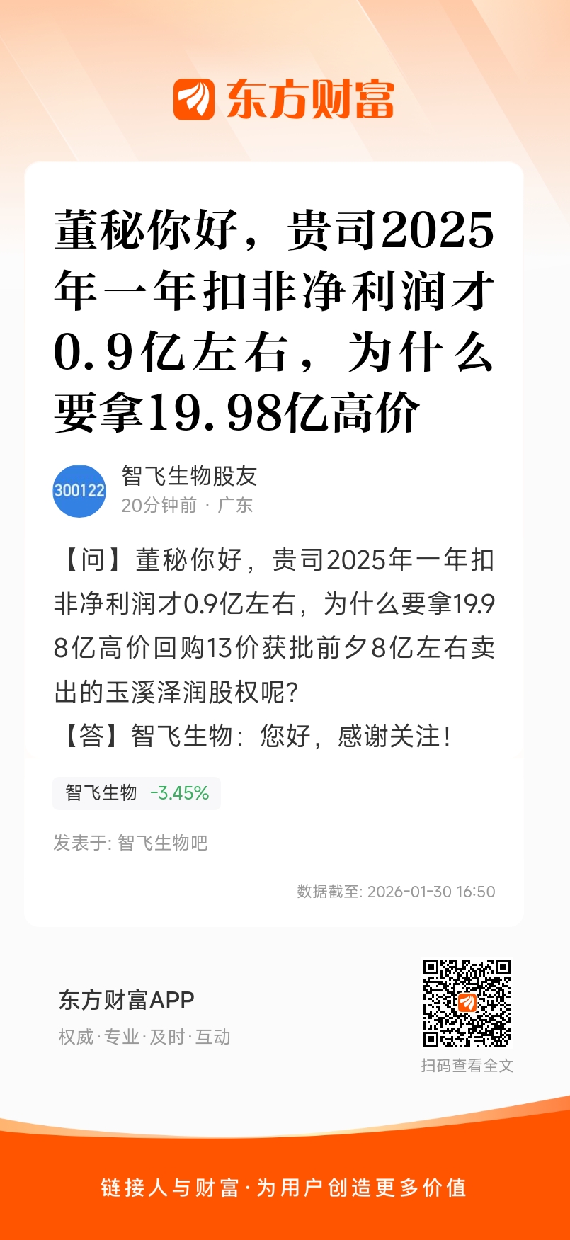 董秘你好,贵司2025年一年扣非净利润才0.9亿左右,为什么要拿19.98亿高价回购13价获批前夕8亿左右卖出的玉溪泽润股权呢?