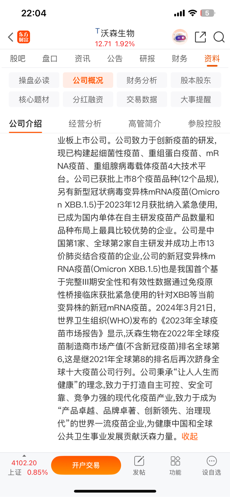 $沃森生物(SZ300142)$ 东方财富更新企业介绍