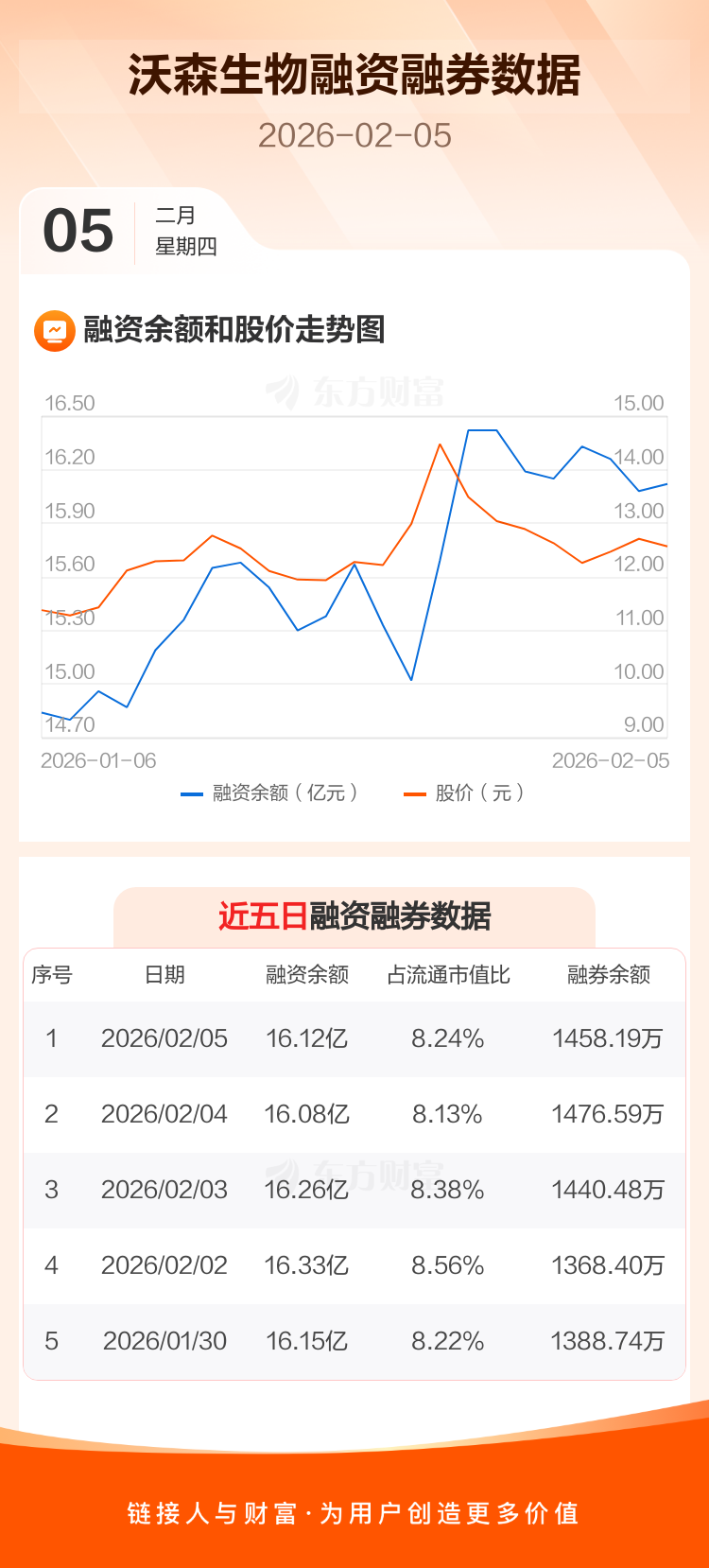 交易所最新数据显示,沃森生物于2026年2月5日获融资买入5301.57万元,融资偿还4898.32万元,当日融资净买入403.25万元。目前,该股融资余额16.12亿,占流通市值比例为8.24%。