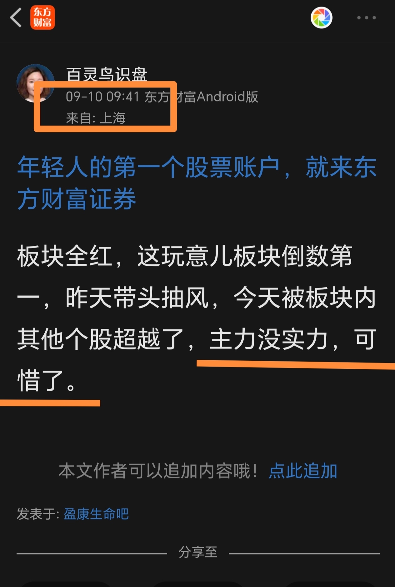 温馨提示: 1.根据《证券法》规定,禁止编造、传播虚假信息或者误导性信息,扰乱证券市场;2.用户在本社区发表的所有资料、言论等仅代表个人观点,与本网站立场无关,不对您构成任何投资建议。用户应基于自己的独立判断,自行决定证券投资并承担相应风险。《东方财富社区管理规定》