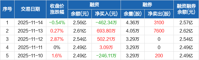 盈康生命:融资净偿还462.34万元,融资余额2.56亿元(11-14)