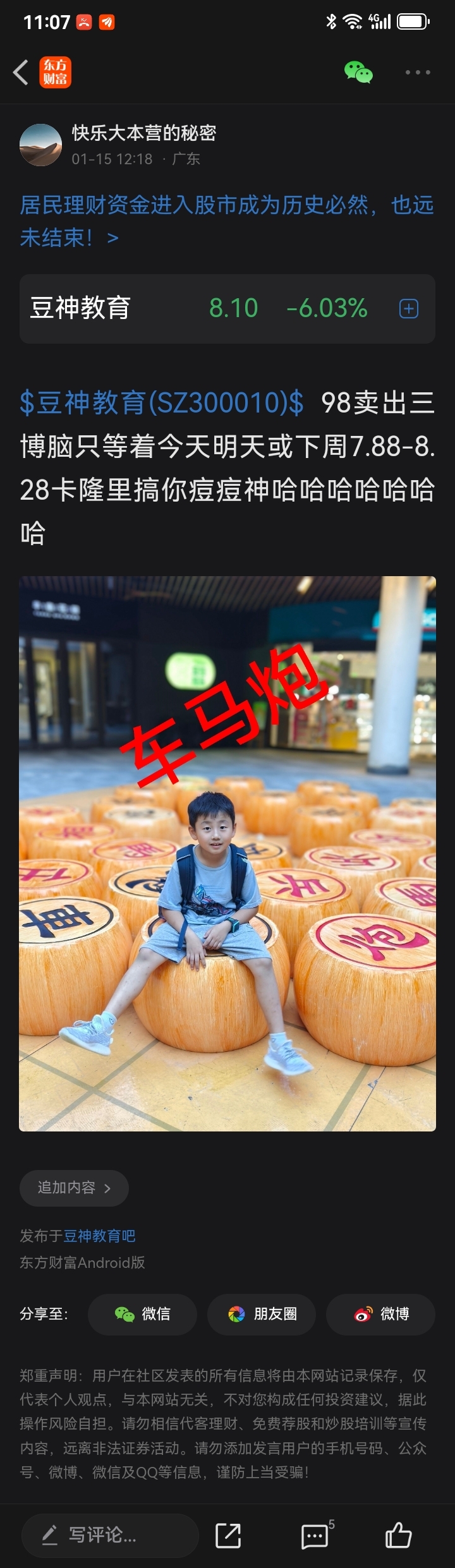温馨提示: 1.根据《证券法》规定,禁止编造、传播虚假信息或者误导性信息,扰乱证券市场;2.用户在本社区发表的所有资料、言论等仅代表个人观点,与本网站立场无关,不对您构成任何投资建议。用户应基于自己的独立判断,自行决定证券投资并承担相应风险。《东方财富社区管理规定》