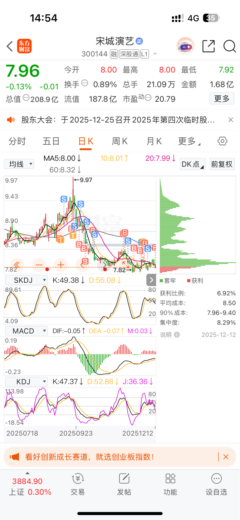 $宋城演艺(SZ300144)$ 儿子你放心!爹是不会放弃你的!爹还需要你来带爹翻盘!