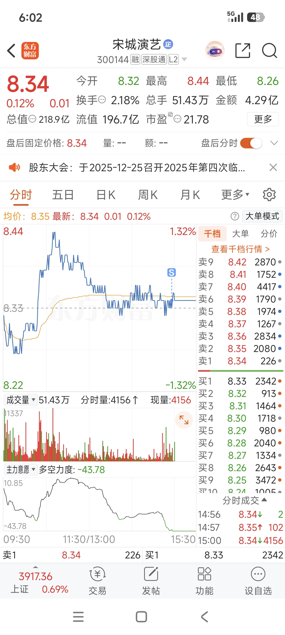 $宋城演艺(SZ300144)$ 我后悔了,给个机会明天买回来,最好来个大低开 。希望主力识相点。