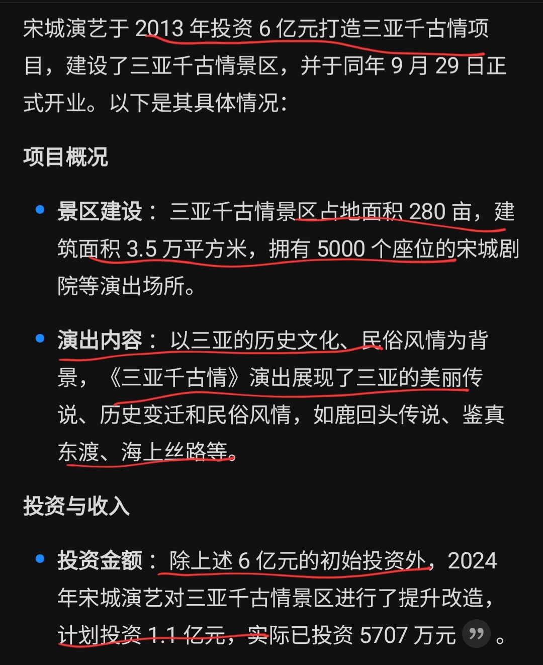 宋城演艺投资的三亚千古情将在海南封关后继续提升景区改造!未来将成为杭州宋城,西安