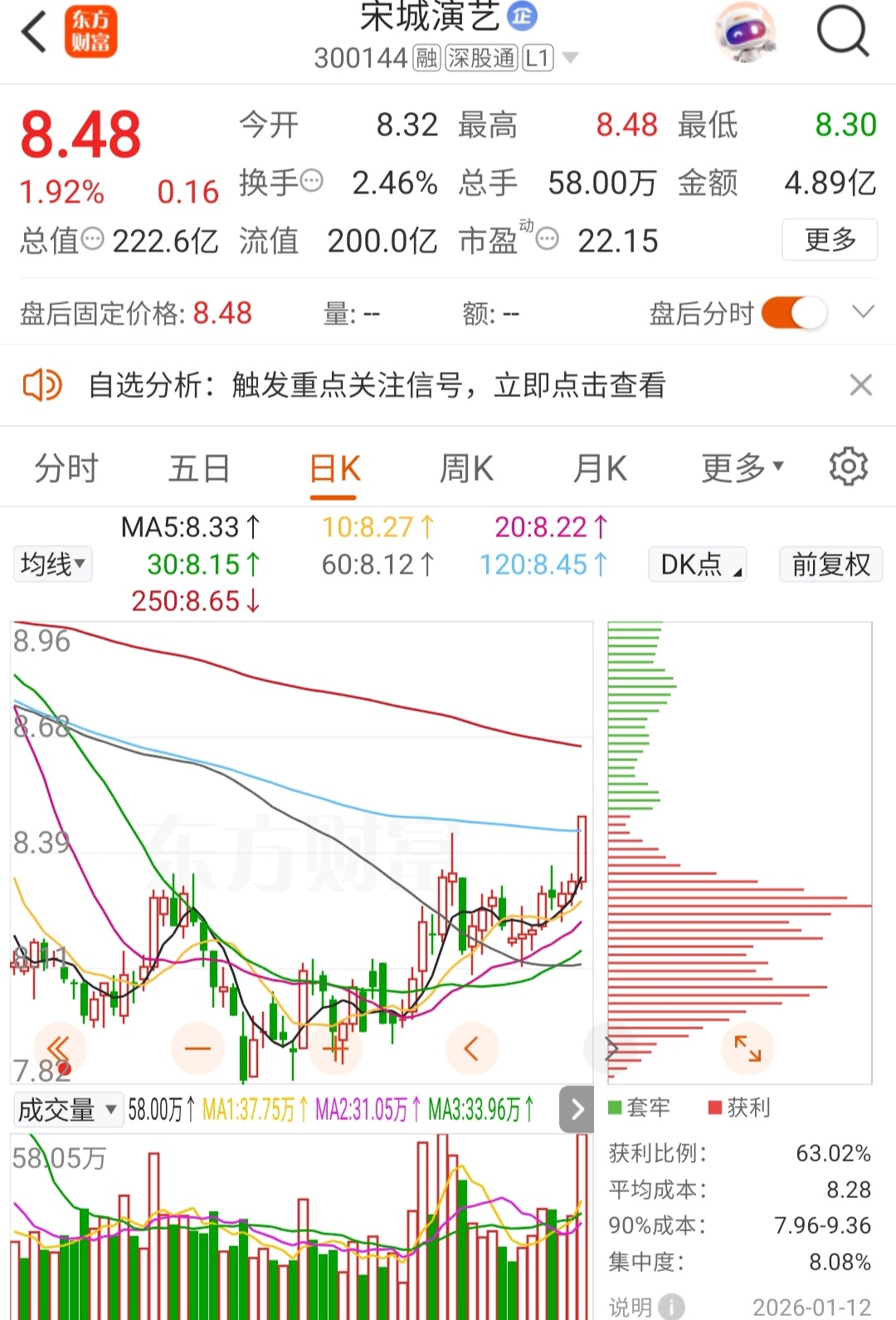 Al赋能文旅成为国家战略重点!文旅演出第一股的龙头企业宋城演艺2026年将重新崛起!由于大量机构的消费服务板块配制极低和做空回补筹码的资金,加上新的增量资金将发生共振上涨!宋城演艺未来上涨空间将非常大!今年春节前有望挑战10到12元区域!