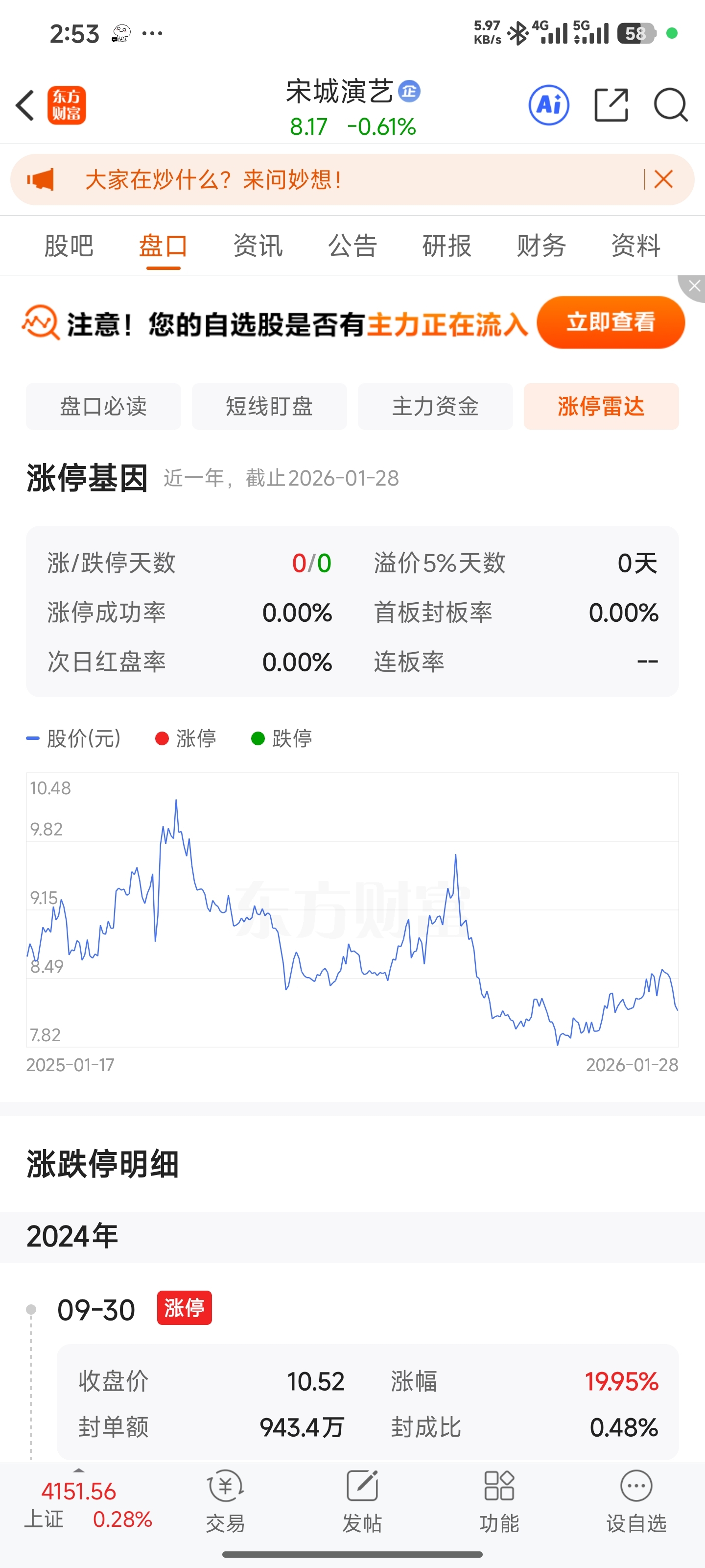 $宋城演艺(SZ300144)$ 一年半没涨停过了,好垃圾啊
