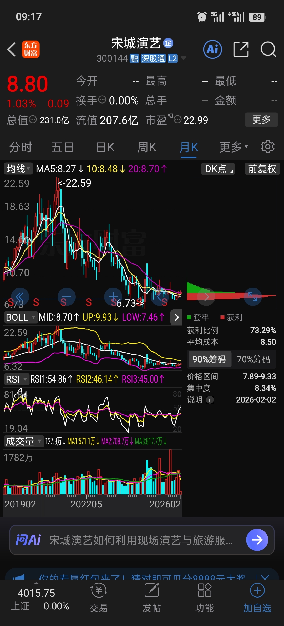 $宋城演艺(SZ300144)$ 月线,绝对的底部,根本不用慌