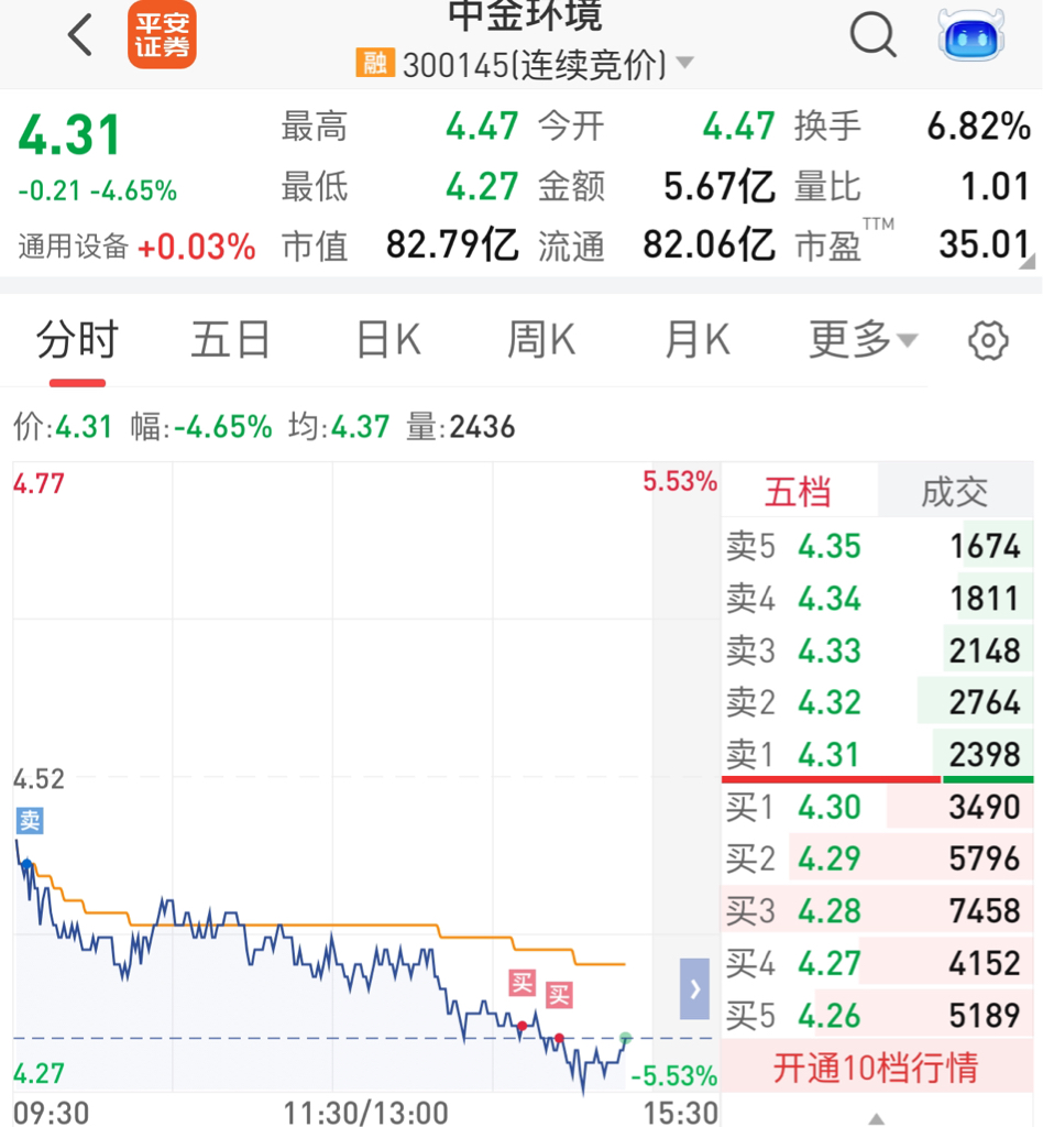 $中金环境(SZ300145)$ 降点成本吧