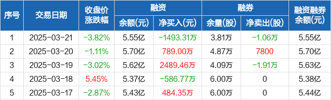 中金环境:融资净偿还1493.31万元,融资余额5.55亿元(03-21)