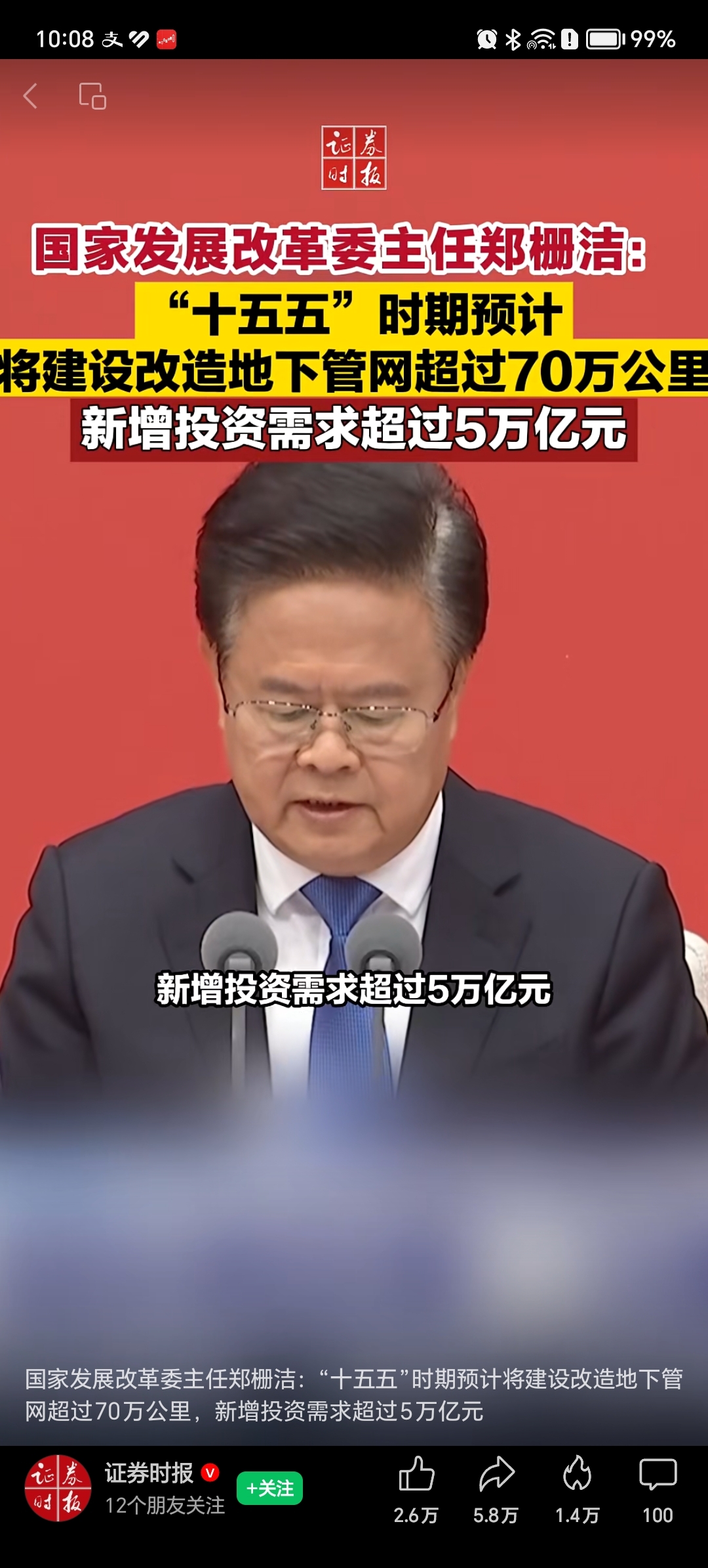 $南方泵业(SZ300145)$ 地下管网5万亿投资!
