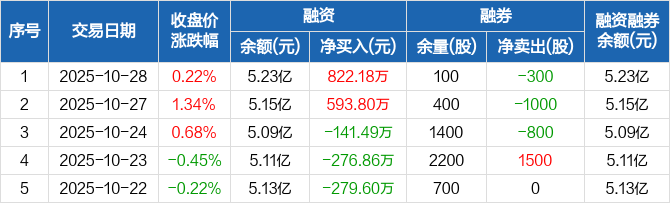 南方泵业:融资净买入822.18万元,融资余额5.23亿元(10-28)
