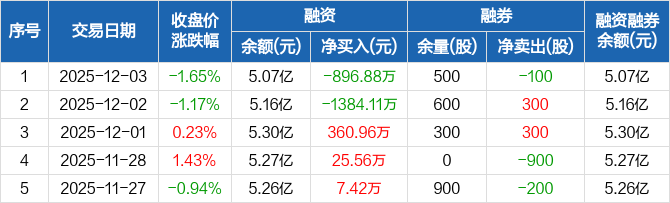 南方泵业:融资净偿还896.88万元,融资余额5.07亿元(12-03)